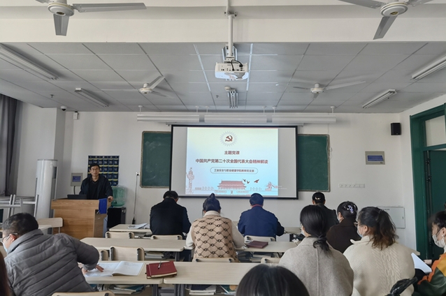 中国共产党第二十次全国代表大会,是在全党全国各族人民迈上全面建设社会主义现代化国家新征程、向第二个百年奋斗目标进军的关键时刻召开的一次十分重要的大会。为认真学习宣传贯彻中国共产党第二十次全国代表大会精神,XCSport教师党支部书记马岩岩于2022年11月4日在云龙校区图文信息楼开展以“中国共产党第二十次全国代表大会精神解读”为主题的党课教育活动。