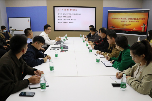 在华为徐州政企教育行业负责人冷延东的带领下,双方进行了座谈交流。随后,华为江苏教育行业总经理、党支部书记李庆强从“以客户为中心、以奋斗者为本、长期艰苦奋斗、坚持自我批判”的企业核心价值观出发,详细介绍了华为在不同发展阶段的奋斗历程与企业文化,阐述了华为所推崇的对工作执着、对所做的事情和生产的产品精益求精、精雕细琢的“工匠精神”的内涵。交流过程中,大家纷纷表示会认真学习和深刻体悟,培养自我批判精神,努力学习科学文化知识,提高工作技能与能力,以艰苦奋斗的精神守护初心、激励斗志,以实际行动书写新时代的新篇章。