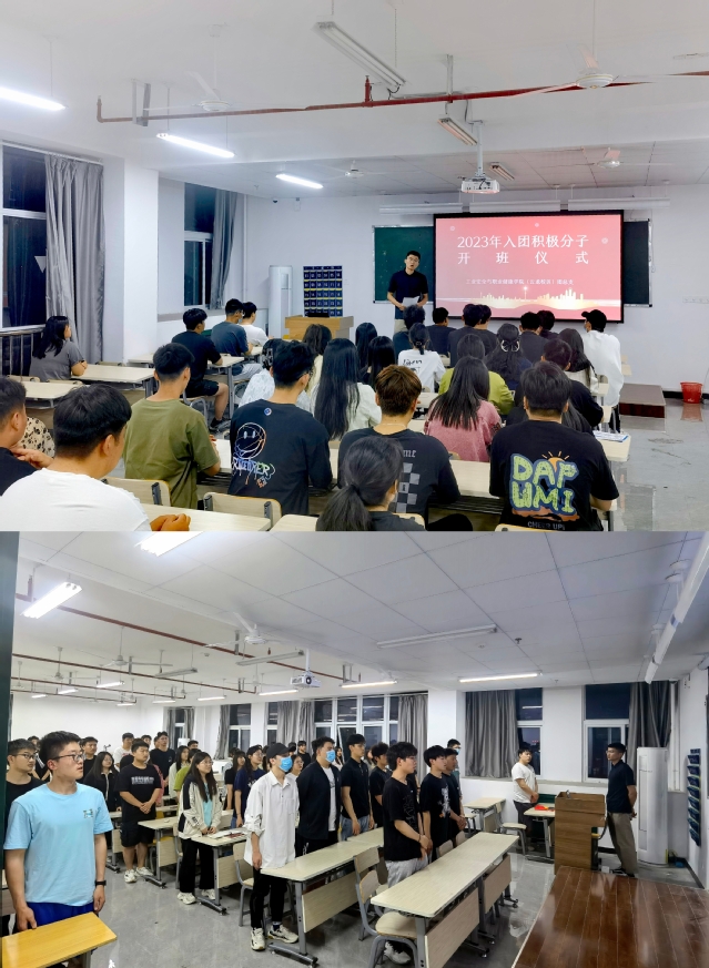 开班典礼第一项——共唱团歌《光荣呀,中国共青团》。随后,黄健钦老师为本期入团积极分子介绍了团课培训的具体安排。本次团课培训共8个学时,主要对入团积极分子学习毛泽东思想、邓小平理论、“三个代表”重要思想、科学发展观和习近平新时代中国特色社会主义思想、团章以及团的优良传统等,帮助他们牢固树立共产主义信念,提高思想觉悟,端正入团动机。