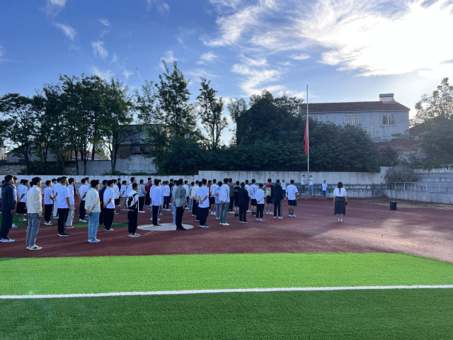 10月1日早晨七点,新疆班全体师生以饱满的精神状态齐聚在操场上,举行“迎国庆,升国旗”升旗仪式。伴随着雄壮的国歌声,五星红旗冉冉升起,师生精神饱满面向红旗行注目礼并奏唱国歌。