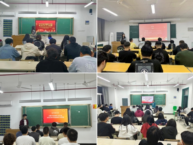 各班团支书向同学们讲述了习近平新时代中国特色社会主义思想主要内容,让同学们对其有了更深的了解,强调新时代的中国青年,必须要坚定马克思主义、共产主义理想信念不动摇,只有做到真学、真懂、真信、真用,才能在民族复兴的赛道上有定力、不迷惘,向着正确目标奋勇奔跑。