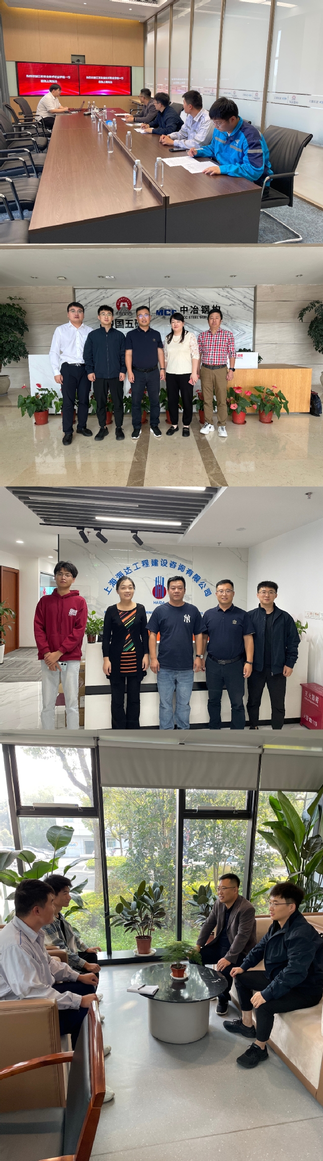 为深化校企合作,加强企业联系,听取企业人才培养建议,同时了解2021级校外实习员工的工作情况。10月16日,公司辅导员乔成诚、陈尔雷老师前往上海走访就业市场,了解实习生实习情况,开拓实习就业岗位,助推产教融合,先后走访了上海宝冶集团有限公司、上海宝冶集团有限公司建筑工程分公司、中冶(上海)钢结构科技有限公司、上海海达工程建设工程监理有限公司并开展座谈。