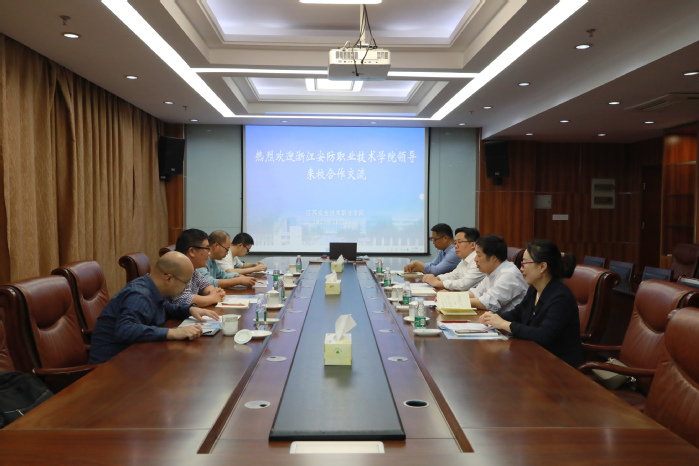 吉智代表公司对季凌斌一行的到来表示欢迎,并介绍了公司在安全应急类专业在专业建设、人才培养、实训基地建设等方面的工作经验。季凌斌介绍了浙江安防职业技术公司的基本情况以及本次交流的目的。