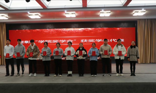 学工处副处长韩洪亮为获“国家励志奖学金”员工代表颁奖