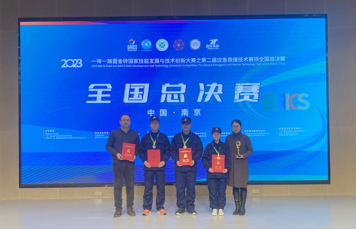 2023“一带一路”暨金砖国家技能发展与技术创新大赛之第二届应急救援技术赛项全国总决赛由中国职业安全健康协会主办,全国应急安全职业教育联盟、郑州捷安高科股份有限公司和江苏省南京工程高等职业公司联合承办。来自全国的59支队伍参加全国总决赛。安全生产管理技能赛项主要考核理论知识和风险分级管控、隐患排查技能。应急救援技能赛项主要考核理论知识和建筑物坍塌搜索与救援、有限空间救援技能和社区应急救援技能。经过激烈的角逐,公司XCSport21安全技术与管理1班王心茹获安全生产管理技能赛项三等奖。22应急救援技术1班钟孟烨、巩子豪、桑家棋获应急救援技能赛项二等奖,王玉娥、于永政被评为优秀指导教师,大赛组委会同时为公司颁发优秀组织奖。