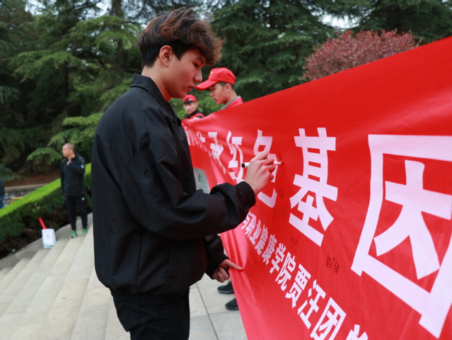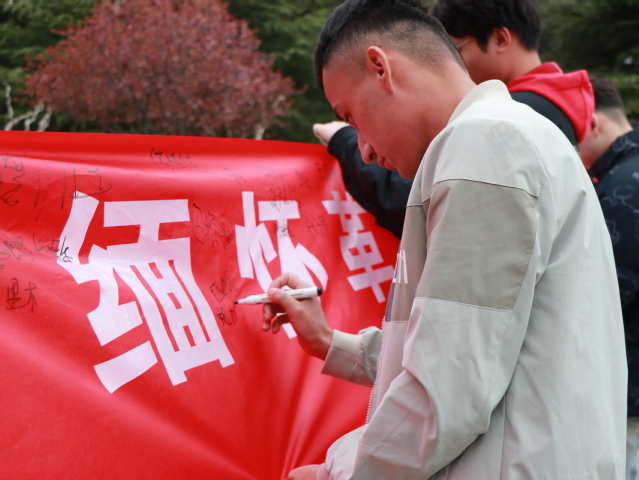 怀着对先烈的崇高敬意,全体师生现场默哀三分钟,并在横幅上签下自己的名字,表达心中最深切的悼念。