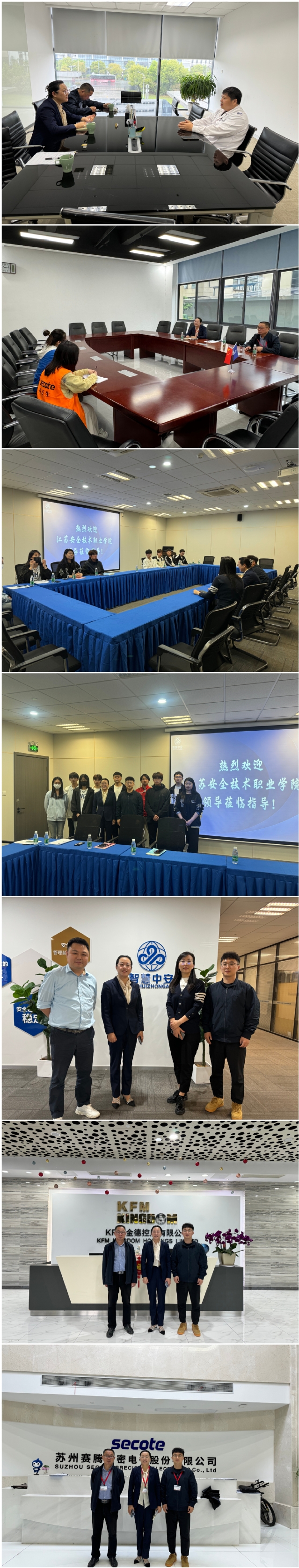 为深入贯彻落实教育部“访企拓岗促就业”专项行动要求,进一步推动校企合作,4月17日,公司党总支副书记金华、辅导员陈尔雷一行赴苏州赛腾精密电子股份有限公司、金德控股有限公司、智慧中安(苏州)云科技有限公司进行走访并看望实习员工。