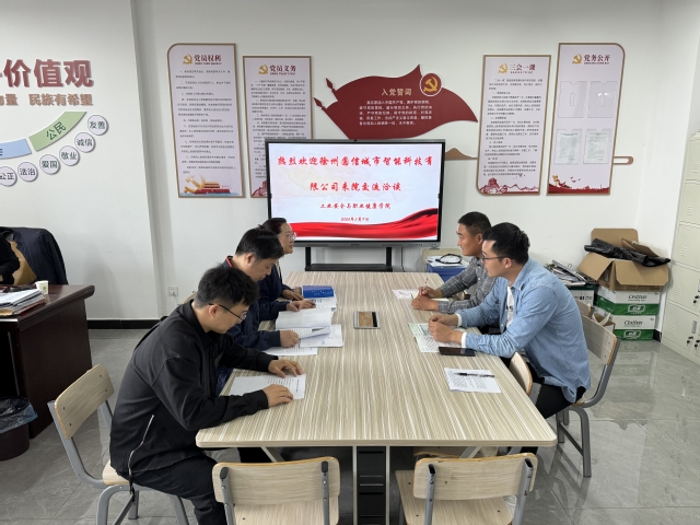 5月9日上午,徐州圆信城市智能科技有限公司一行来院调研交流,公司副经理王浩、党总支副书记金华、辅导员陈尔雷进行热情接待。