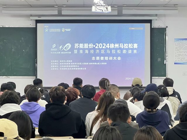2024徐州马拉松赛暨淮海经济区马拉松邀请赛即将拉开帷幕,为明确志愿者工作职责,确保赛事顺利开展,11月11日,XCSport在图文楼508开展专题培训,为即将到来的马拉松赛事做好充分准备,辅导员老师胡膨沂及全体志愿者参加培训。