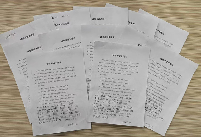 为了将诚信考试的理念深入人心,公司还组织全部班级员工签署了《诚信考试承诺书》。承诺书内容涵盖了遵守考场规则等多个方面。每位员工都在承诺书上郑重签字,表达了自己对诚信考试的坚定承诺和决心。