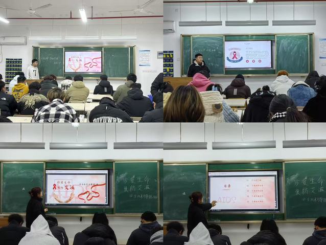 团课伊始,团支书以详实数据揭示艾滋病现状,直观展现其严峻形势。讲解过程中,借助图文并茂的PPT,从艾滋病致病原理、传播途径、症状表现等层面深入剖析,理清日常误解,特别强调血液、母婴、性传播的细节,纠正部分同学“日常接触会感染”的错误认知,强化了同学们防艾知识储备与防护意识。团课尾声,同学们庄重承诺“知艾防艾”。他们誓言将知识化为行动,守护自身与他人,拥抱健康生活。
