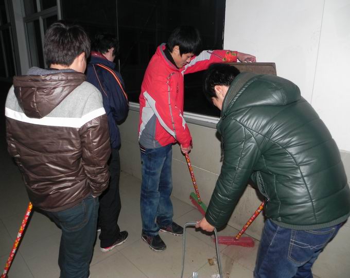 采矿工程系员工党支部书记金华于12月9日利用下午课外活动时间组织采矿系入党积极分子义务打扫教学楼卫生。此次义务劳动主要是利用每天下午课外活动和晚自习放学后,对教学楼进行打扫。金主任要求同学们将地面、卫生死角认真清理干净,为广大师生创造良好的工作和学习环境,体现入党积极分子及员工党员的先进性。打扫卫生过程中,同学们不怕苦不怕累认真打扫,最后金主任对同学们的表现进行称赞,并希望他们以后做的更好,