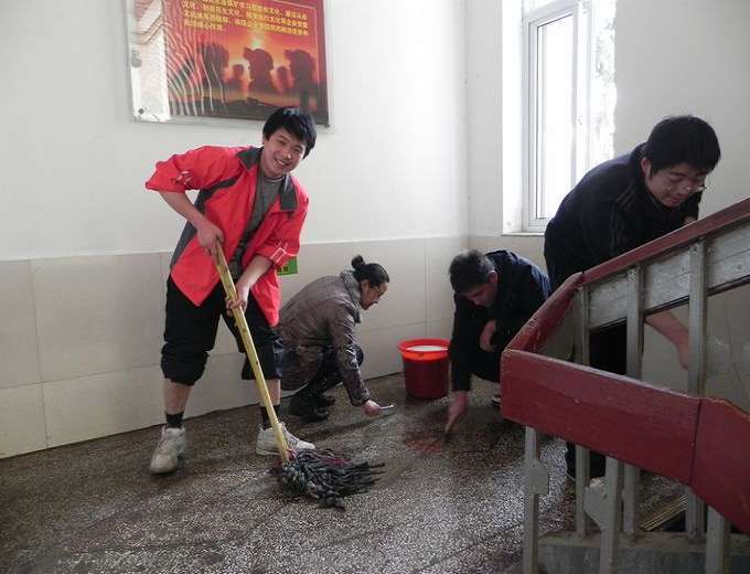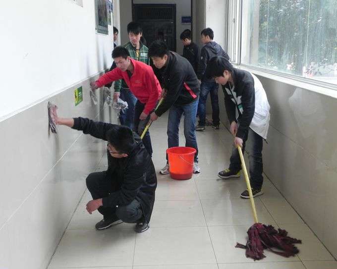 3月31日既是采矿系学雷锋文明礼貌月活动的最后一天,同时也是全系每周例行的大扫除时间,为了更好地改善采矿教学楼内的卫生状况,为广大师生营造一个更为清洁、卫生、舒适的学习和工作环境,下午两节课后,采矿系各班级员工在班主任的带领下对本班教室及班级卫生区域进行了一次彻底的卫生大扫除,同学擦玻璃的、拖地的、打水的、摆桌椅的、扫地的、捡拾杂物的……同学在班主任的带领和学管教师们的指导下干得积极、主动。员工党员、入党积极分子以及部分积极要求进步的同学们也组成了志愿者队伍,对教学楼内的一些公共区域及卫生死角进行了全面清理。他们在员工党支部书记金华的带领下,用洗衣粉、洗洁精、铁刷、钢丝球等工具对教学楼内的窗台、墙裙、楼梯、扶手等处的污渍、痰迹、口香糖印渍等进行彻底清理,他们不怕脏不怕累,任污水弄脏了衣服、任汗水湿透了衣背,他们毫无怨言。在劳动过程中展示了员工党员的先进性,展示了青年志愿者甘于奉献的风采。经过全系师生的共同努力,采矿系教学楼的卫生面貌发生了很大的转变。金主任在与师生们共同劳动的过程中指出,打造文明系部、营造优良学习环境是一项长期的工作,需要全体师生的共同创建,同时也需要每一位同学提高文明意识,提高文明素养,不随手丢垃圾、不随地吐痰,这样优良的系风将尉然生成。 |