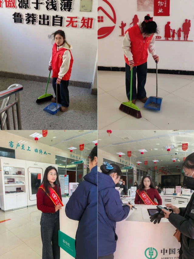 24应急1班的高若娴回到家乡,为了培养自己的社会责任感和提升自我,积极参加志愿活动。这次她选择了两个地点,一个是中国农业银行,另外一个是社区,在银行中,她担任引导员一职,帮助维持秩序,帮助有困难的人进行操作,帮助客户了解一些基础的金融知识,使得银行的工作锦上添花。除此之外,她还参与了社区活动,银行工作结束后,她去社区帮忙打扫卫生,关爱孤独老人,帮助物业进行垃圾分类,使社区的环境有所提升。