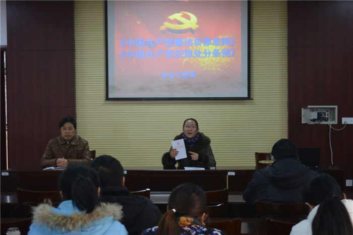 随着党要管党、从严治党的不断深入,旧有的《中国共产党党员领导干部廉洁从政若干准则》已不能完全适应现实需要。日前,中共中央重新印发了《中国共产党廉洁自律准则》和《中国共产党纪律处分条例》。 安全工程系党支部为了加强对党员领导干部的思想教育和廉洁自律教育,从两大条例下发之日起就认真组织党员干部采取集中学习、分组讨论、自主学习、撰写心得等方式进行学习。不断提升学习效果。 12月29日下午在教一楼会议室继续召开党员学习会,学管副主任金华同志及教学副主任王浩同志分别带领大家继续深入学习了《中国共产党廉洁自律准则》和《中国共产党纪律处分条例》。为推进安全系党员对《准则》和《条例》的深入学习,金主任、王主任继续要求在各位党员在集体学习的基础上,认真进行研读,要原原本本学、逐条逐句学,反复学、经常学,全面领会精神实质,准确把握内涵要义。同时还要做好学习笔记,撰写心得体会等。 多种形式学习活动的开展,旨在使安全系党支部广大党员干部学深悟透《准则》和《条例》精神,树立党章党规党纪意识,做到守纪律、讲规矩,并将《准则》和《条例》内化于心、外化于行,切实增强广大党员干部的政治责任感,增强广大党员干部政治上、思想上、行动上的先锋战斗力。 文/图 高燕 审稿 李志浩