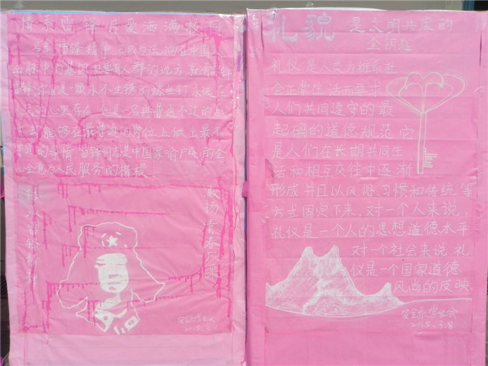 雷锋精神是中华民族宝贵的精神财富。它激励着一代又一代的青少年健康成长。今年的三月五日,是毛主席题词“向雷锋同志学习”五十二周年。 安全工程系为了进一步弘扬雷锋精神,推动全系青年员工“学雷锋”活动深入持续开展,激发广大同学服务他人、助人为乐、关心集体、自强不息的热情,新学期开学,安全工程系在全系员工中开展了“传承雷锋精神,激扬青春风采”主题活动。 3月7日的升旗仪式,既是新学期第一次晨会,也是安全系学习雷锋活动启动仪式。晨会上,安全系党支部书记、主任李志浩,学管副主任金华,从雷锋精神的时代意义、历史文化定位以及学习雷锋精神的重要性、雷锋精神的特色、如何学习和弘扬雷锋精神等方面向同学们进行教育,鼓励安全学子,新学期新气象,传承和发扬雷锋精神,激扬青春亮丽风采,员工会主席吴泽辉从青年员工学习、守纪、助人为乐等方面呼全系每一位同学积极以实际行动、从点滴小事做事,践行雷锋精神,发挥正能量,树立新风尚。 安全系员工会宣传部适时制作并推出了学习雷锋及文明礼貌月宣传牌板,倡导同学们学习并发扬雷锋精神、讲究文明礼貌、注重仪容仪表,说文明话、办文明事、做文明人。 启动仪式后,连日来,安全系员工会干部首先行动起来,紧接着安全系团总支行动起来了、安全系党员先锋岗的积极分子们行动起来了、各班班干及骨干员工行动起来了、新疆班的同学们行动起来了……,大家利用课外活动、中午休息等时间为全系的师生打扫卫生、做好服务,以个人的力量让雷锋精神在安全工程系不断传承。 经历了一个寒假,教学楼、教室里许多地方沾上了灰尘,楼梯上、墙壁上染上了污渍,学雷锋的同学们不顾天气依然寒冷,反复地擦、扫、拖……对窗户、走廊、楼梯进行清理。并对教室、楼梯的各个死角进行清理,对桌椅进行擦拭。在打扫的过程中,同学们各负其责,清理并保持教学楼的卫生,为广大师生营造了良好的学习环境。 接下来,安全系将继续推出爱心献社会、共护民族林等一系列学雷锋活动,让雷锋精神在安全系成为一种系部文化,让雷锋精神成为全体同学共有的良好品德。 文/图 高燕