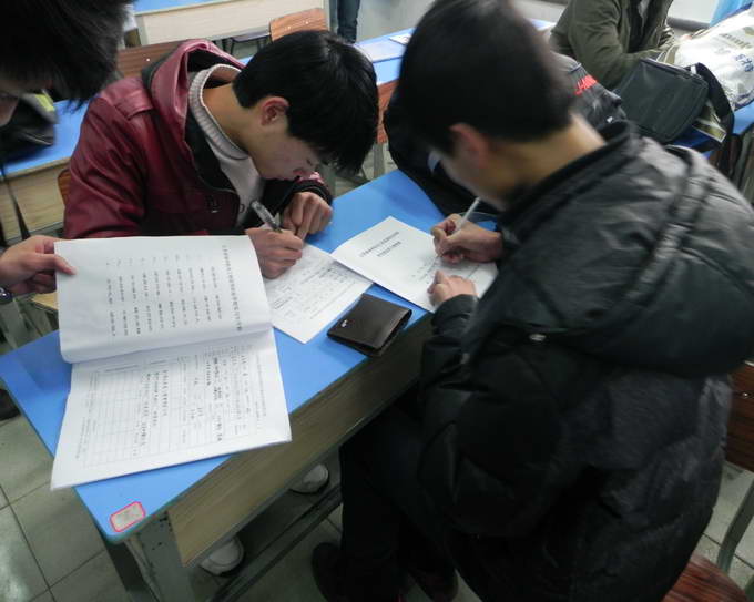 同学们认真填写就业表