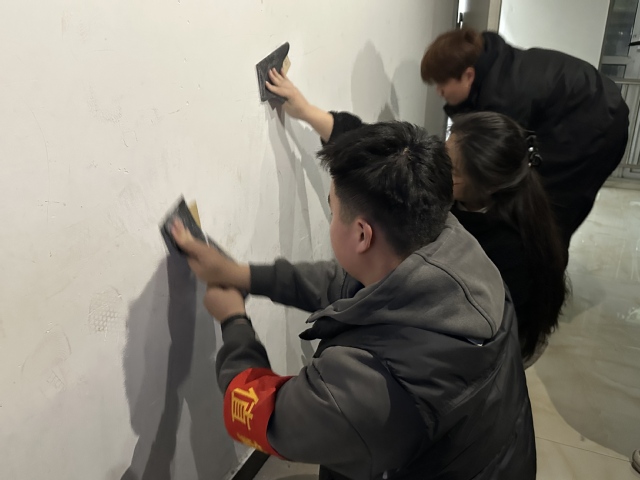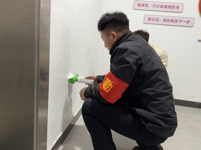 活动中,入党积极分子按照员工党支部制定的环境整治方案,明确责任分工,将参与人员划分为四个组,各小组提前领取砂纸、乳胶漆等清扫工具,并针对重点区域制定清理计划,确保整个活动高效有序。入党积极分子主要对电梯口墙面字迹、脚印进行清除。刘一为老师对各区域完成质量进行实时检查,及时提出整改意见。经过两小时集中环境整治,楼栋焕然一新。