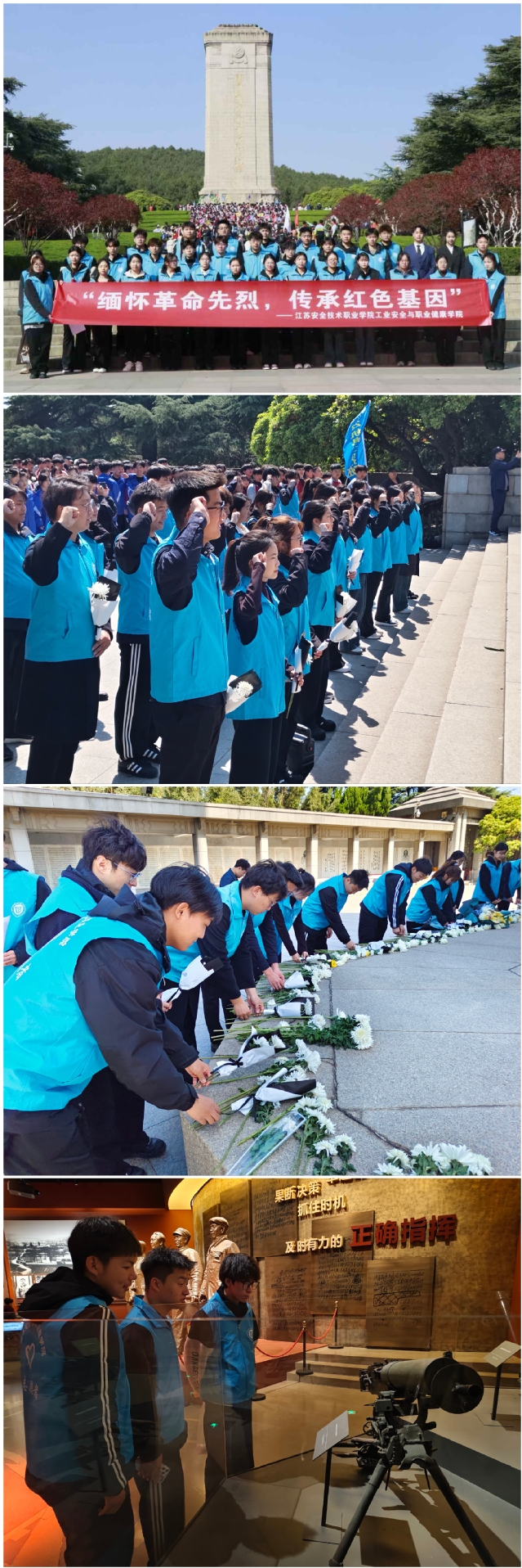活动在国歌声中拉开帷幕,这激昂的旋律,是对先烈精神的致敬,更是新时代青年对祖国的庄严承诺。接着,全场肃立向革命烈士默哀,三万余烈士的英名镌刻于此,他们用生命诠释了“听党指挥、依靠人民”的淮海战役精神。此刻,我们以无声的哀思,铭记他们不朽的功勋。默哀结束,入团积极分子代表带领全体员工宣读入团誓词,“我志愿加入中国共产主义青年团,坚决拥护中国共产党的领导......为共产主义事业而奋斗!”。这铿锵的誓言,是青春向党的决心,更是红色基因的赓续。活动最后,在主持人的引导下,同学们依次瞻仰纪念塔浮雕与烈士名录,有序列队并献上手中的鲜花。所有流程结束之后,老师还带领同学们参观了淮海战役纪念馆,通过文物史料感悟红色力量。