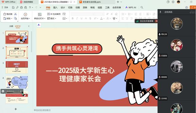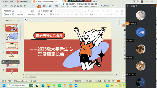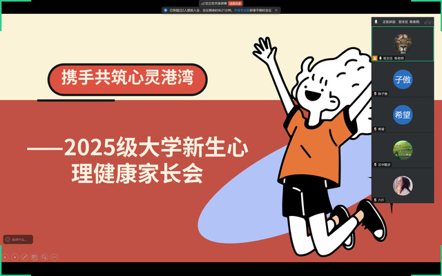 为切实加强家校协同育人效能,帮助员工以积极健康的心理状态迎接大学新生活,公司于开学前线上召开2025级心理健康家长会。班主任与全体员工及家长齐聚“云端”班级会议室,共话员工心理健康成长,为新学期员工心理健康保驾护航。
