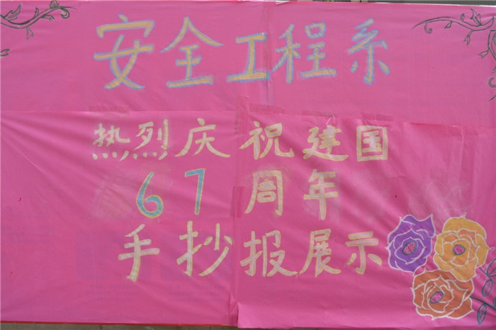 为庆祝新中国成立67周年,弘扬广大同学的爱国主义精神,安全工程系举办了庆祝新中国成立67周年手抄报比赛。
