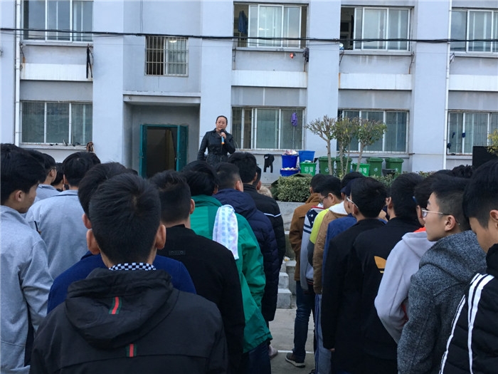 早上630分,校保卫处在5号楼内燃放了烟雾弹,模拟火灾现场,紧接着警报声响起,各楼层、各班级同学按照既定逃生路线,用湿毛巾掩住口鼻,有序、快速穿越浓烟进行疏散,用最短时间安全撤出宿舍楼,到宿舍楼前的篮球场上集合。整个演习过程中,全体同学都能严肃、认真地对待。