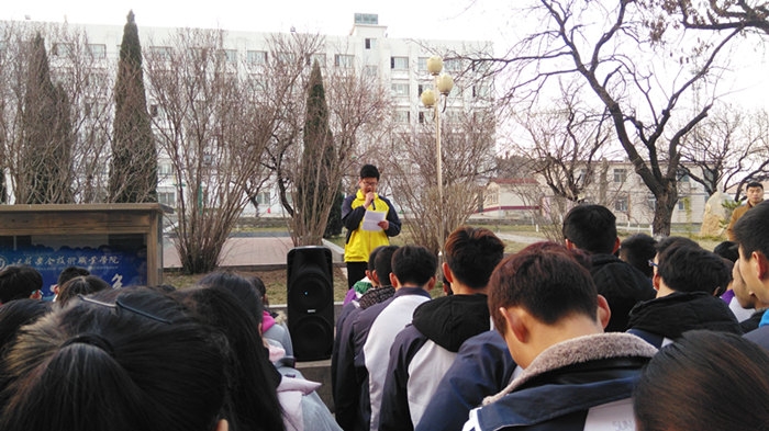员工会主席丁金一在会上宣读了倡议书,他呼吁广大同学自身做起,从小事做起,从刻苦学习、团结互助、尊敬师长、遵守校规做起,让雷锋精神在在工程系发扬,让学习雷锋的好风气安全工程系继续传承。