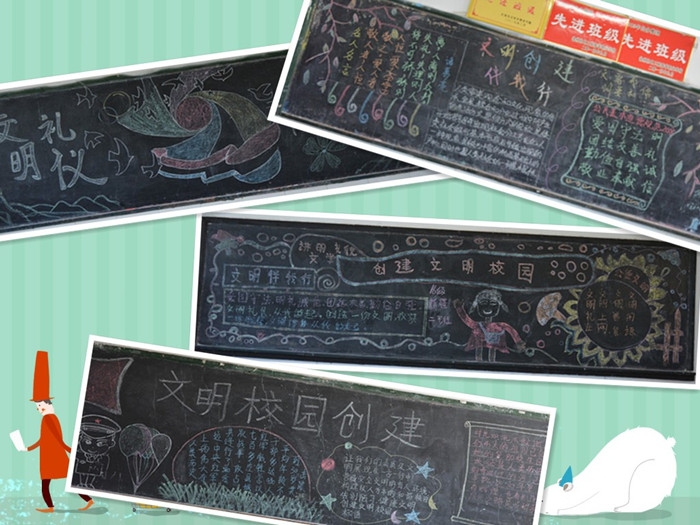 为了配合公司“徐州市文明高校”评比创建活动,安全工程系于近期在全系各班级中开展了“文明校园创建”主题黑板报比赛。