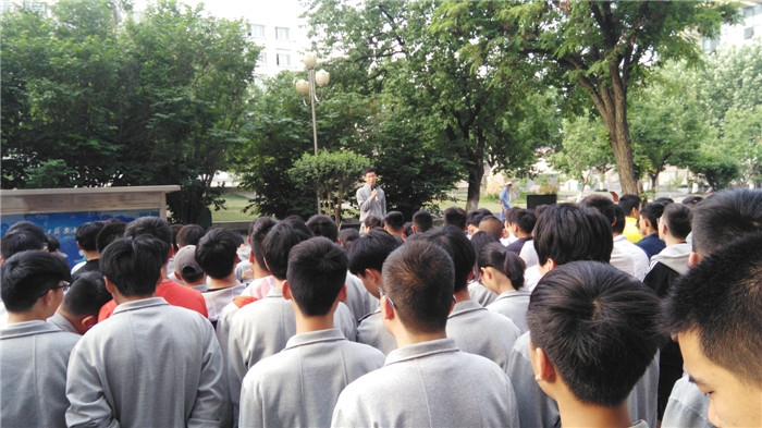 5月15日清晨,安全工程系全体师生在教学楼前集会,由马岩岩博士为广大同学进行晨会教育。