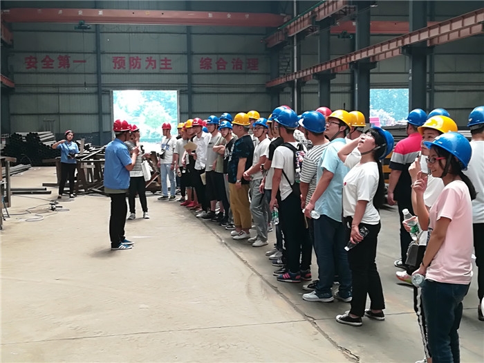 为了进一步提升员工对所学专业的了解,提高认知能力,完成课堂理论知识与企业生产现场知识的有机结合,6月1日安全工程系组织2016级安全技术与管理(三年制、高招)1班、2班的全体同学,在系主任李志浩及徐昕老师、刘玉言老师的带领下,赴江苏恒久钢结构工程有限公司进行认知实习。