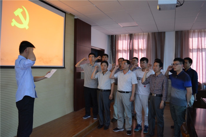 随后,全体党员面向党旗,举起右手庄严宣誓,“我宣誓:我志愿加入中国共产党……为共产主义奋斗终身……”庄严的誓词在会议室中激荡,在每一位党员的心中激荡,共产党人的豪情壮气在铿锵有力的誓词中激越。