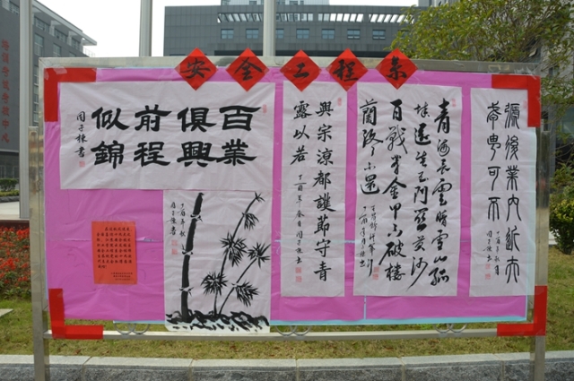 2017年10月23日,安全工程系在公司云龙校区喷泉广场前举办了“喜迎十九大·金秋书画展”活动。举办该项活动是我系老员工自发组织庆祝党的十九大胜利召开的一项活动。