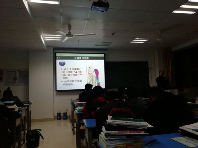 为切实加强员工对电梯安全知识的理解,熟知电梯使用的正确方法,提高员工电梯安全防患意识,保障员工在校期间的人身安全。2017年11月12日晚,安全工程系各班班主任利用晚自习时间对员工进行了关于《电梯安全知识》的专项讲座。