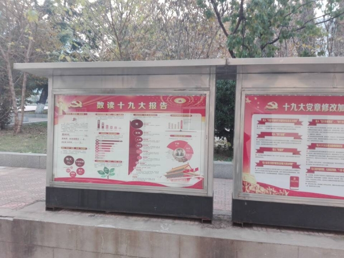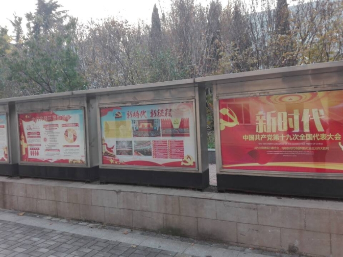 11月12日宣传板报全部完成,内容包括《新时代,新征程》、《十九大重要精神解读》、《数读十九大报告》、《十九大党章修改加入了哪些重磅内容?》、《用习近平新时代中国特色社会主义思想武装全党》、《十九大报告的新思想、新论断、新提法、新举措》、《贯彻十九大精神:不忘初心,继续前进》等内容。内容总体简要,形式美观,赏心悦目,可读性强。通过此次板报宣传学习十九大新成果,牢记总书记嘱托,坚决把好导向、管好阵地、建强队伍,敢于发声,牢牢掌握宣传阵地的管理权话语权。工作中以十九大重大思路和要求,坚持学以致用、以用促学,把十九大精神的学习和宣传不断引向深入,转化为解决实际问题、推进工作成效的实际行动。 (图/文 张继周 审稿 李志浩)