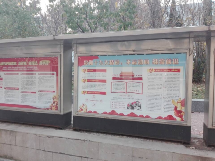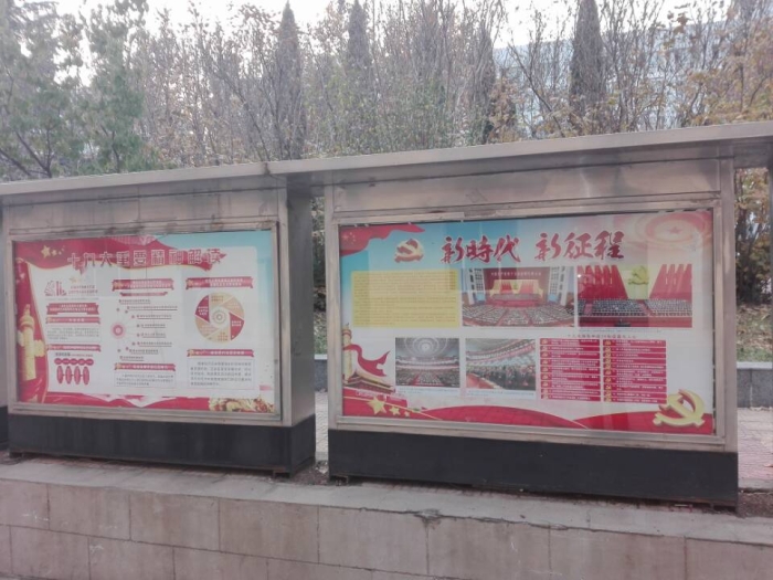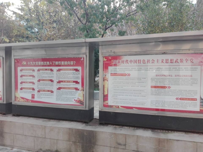 11月12日宣传板报全部完成,内容包括《新时代,新征程》、《十九大重要精神解读》、《数读十九大报告》、《十九大党章修改加入了哪些重磅内容?》、《用习近平新时代中国特色社会主义思想武装全党》、《十九大报告的新思想、新论断、新提法、新举措》、《贯彻十九大精神:不忘初心,继续前进》等内容。内容总体简要,形式美观,赏心悦目,可读性强。通过此次板报宣传学习十九大新成果,牢记总书记嘱托,坚决把好导向、管好阵地、建强队伍,敢于发声,牢牢掌握宣传阵地的管理权话语权。工作中以十九大重大思路和要求,坚持学以致用、以用促学,把十九大精神的学习和宣传不断引向深入,转化为解决实际问题、推进工作成效的实际行动。 (图/文 张继周 审稿 李志浩)