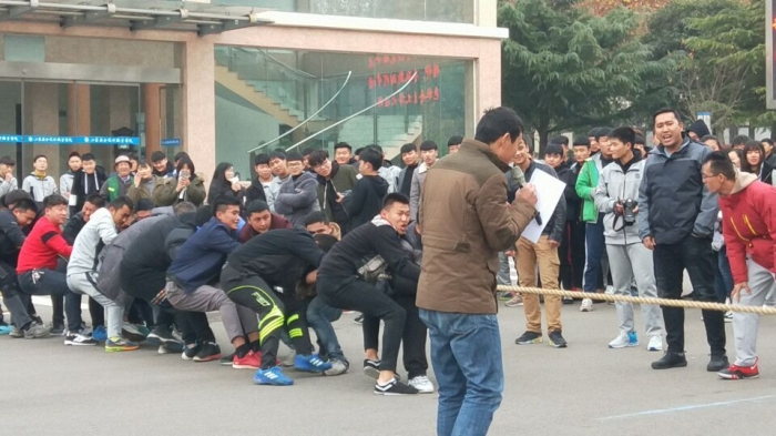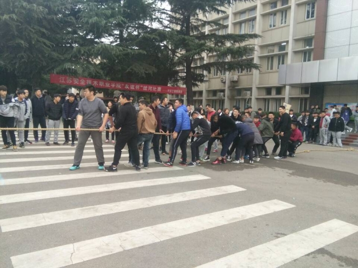 为加强公司系之间的交流,增强员工身体素质,丰富课余生活。公司于2017年11月21日下午两节课后在汽车系门前举办“校园联谊拔河比赛”。由校团委组织开展。观众为各系员工代表及部分老师。安全系选拔20名男生,10名女生参赛。