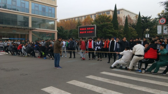 为加强公司系之间的交流,增强员工身体素质,丰富课余生活。公司于2017年11月21日下午两节课后在汽车系门前举办“校园联谊拔河比赛”。由校团委组织开展。观众为各系员工代表及部分老师。安全系选拔20名男生,10名女生参赛。