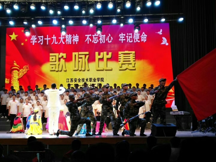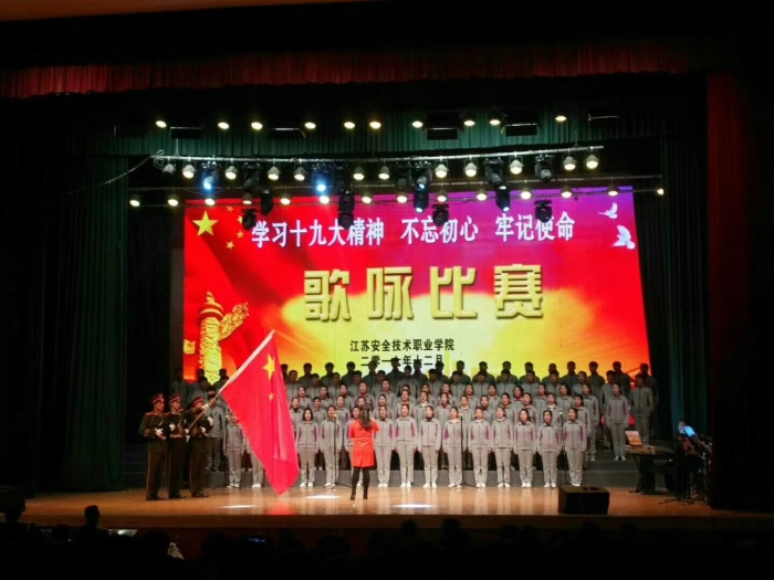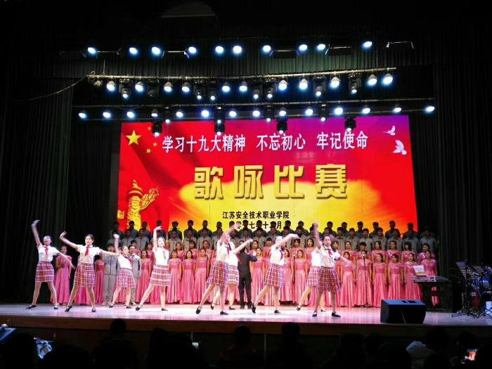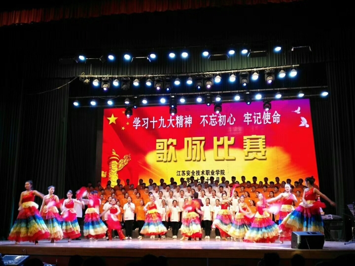 比赛在震撼有力的《歌唱祖国》中拉开帷幕。随后,来自各系的14支代表队以整洁华美的服装、高亢嘹亮的歌声、蓬勃向上的朝气亮相比赛现场,轮番展示了他们精心编排的合唱曲目,联袂为观众们带来了一场精彩的视听盛宴。饱含真情的《映山红》、雄浑激昂的《长征》、高亢嘹亮的《走向复兴》、婉转动听的《在灿烂的阳光下》……各代表队独具匠心的编排和激情四射的表演,一次次将现场观众带到那个战火纷飞的年代,在回忆和感动中分享着政法师生对革命先驱的崇高敬意和对祖国母亲的深深眷恋。整场比赛气氛热烈,掌声雷动。