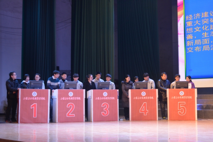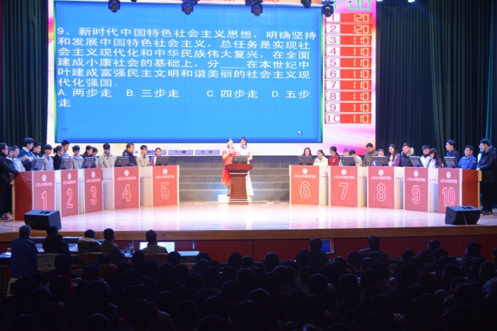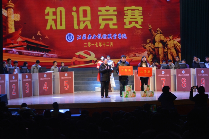 本次知识竞赛由孙健身书记等人担任裁判,陈艳娇李梦冉两位同学担任主持人。参赛方队共10只,每支队伍有一名教师和两名员工参赛。在主持人宣布比赛规则后比赛开始。比赛过程中各队队员积极回答问题,镇定自若、全力以赴,参赛选手的表现赢得台下观众的阵阵掌声。最后,经过激烈的角逐,我系第二方队获得二等奖的优异成绩。