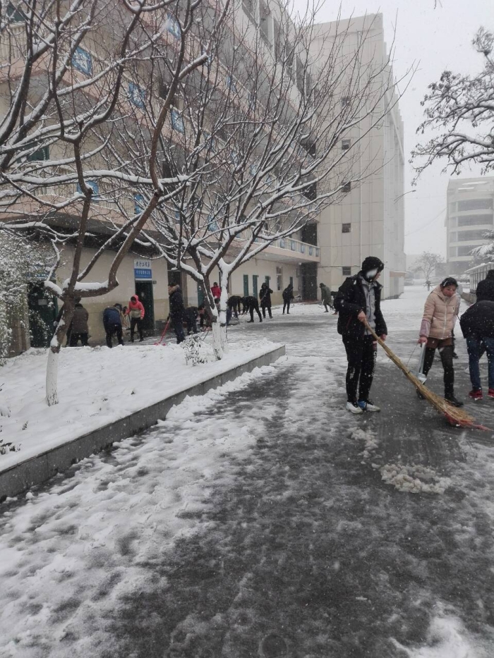 2018年的第一场雪使整个校园银装素裹,分外妖娆。但厚厚的积雪也使师生出行带来不便,为出行方便安全,1月4日中午,在全体老师没课的时间段,安全工程系全体党员、师生在支部书记李志浩带头和组织下进行了一次义务扫雪劳动。
