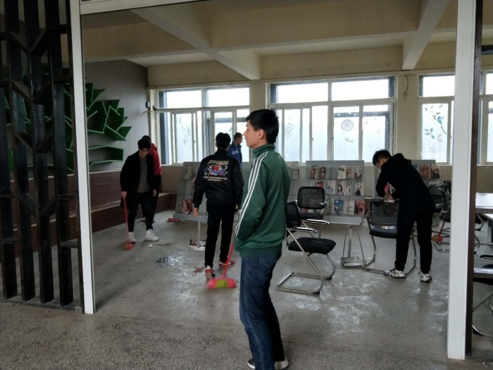 为弘扬社会主义核心价值观,培育全面发展的青年。我系内地新疆高职班的同学于2月24日下午14:00前往教学楼进行义务打扫服务活动。