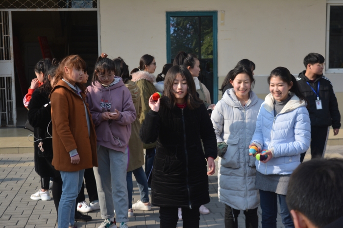 阳春三月,又迎来了一年一度的“三八妇女节”。3月8日下午,由我系组织,全系女同学欢聚一堂,开展了一次非常有意义的趣味活动,纪念“三八”国际劳动妇女节。 活动项目分为踢毽子比赛、跳绳赛和扔沙包等,一阵阵的欢呼声,加油声弥漫在节日的上空,使整个活动气氛达到高潮。女同胞们深深感受到了系领导对本系女同学的关心和照顾,促进了同学间的感情、放松了身心,感受到了节日带给她们的喜悦和快乐。(文/图 木拉提 审核/李志浩)