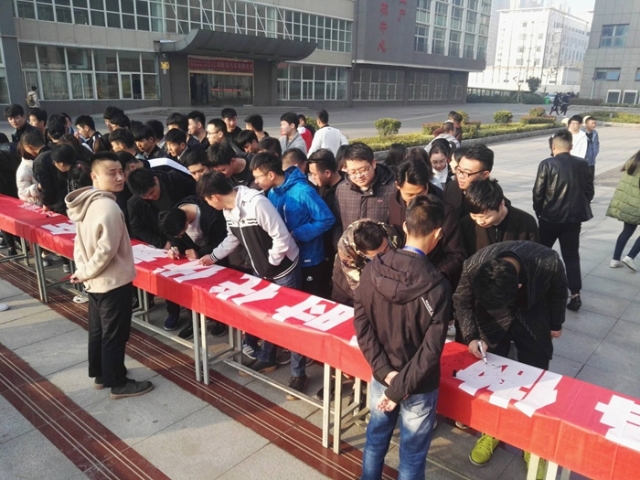 最后,我系进行了以“学习雷锋精神,践行社会主义核心价值观,争做新时代优秀青年”的员工签字仪式,各班同学积极响应,在横幅上签上了自己的名字。