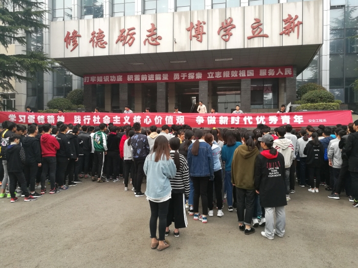 3月15日早上,安全工程系主办的以“学习雷锋精神,践行社会主义核心价值观,争做时代优秀青年”为主题大型签名活动在B1楼北门小广场顺利开展。安全工程系党支部书记李志浩、学管主任金华等出席了本次活动。