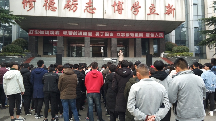 为树立良好的学风、培养员工诚信做人的意识,以及为校园不文明行为专项整治完美收官,3月22日早上,安全工程系在B1楼下对全体员工进行了一次促学风教育晨会。