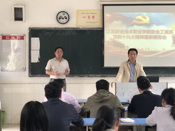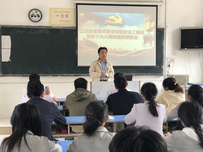 5月23日下午,安全工程系全体教师和员工代表在B1-110室听取由纪检监察室主任刘军做的十九大宣讲报告会。