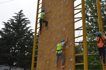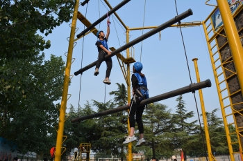 下午两点整,素质拓展正式开始,首先各系进行了团队展示,攀岩、高空滑行、信任之旅、齐心协力等四个项目。在素质拓展活动中,队友间的团队意识逐渐显露,在竞赛项目中队员们的创新意识不断被激起,尤其在信任之旅项目中队员们可以充分感受到勇敢和信任的力量。在最后一个项目——齐心协力游戏中,队员们之间团结友爱、互相帮助,信任也悄然播种在每个人的心中。它包含了喜悦、感动、信任以及感恩,但不可否认的是友谊、信任、团结与感恩在每位参与者心中默默生根发芽。