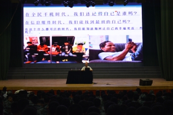张老师在讲座中将反面和正面案例相结合并向同学们放映励志视频,警示同学们无论是处于逆境或辉煌的时刻,都应保持一颗平常心对待生活,直面困难。