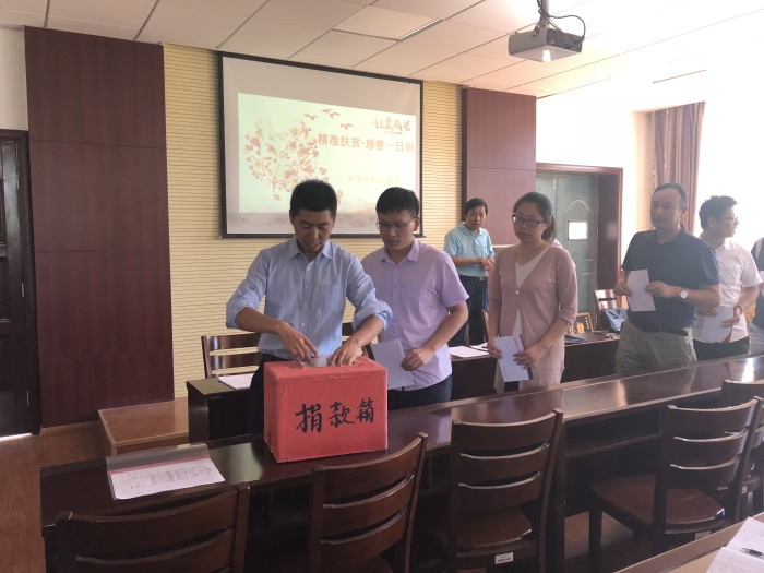 为积极响应省委宣传部,省慈善总会等10部门《关于开展2018年“精准扶贫·慈善一日捐”活动的通知》,弘扬中华民族传统美德,助力脱贫攻坚工作。9月7日,安全工程系组织全体党员、干部、职工集中开展“精准扶贫·慈善一日捐”活动。