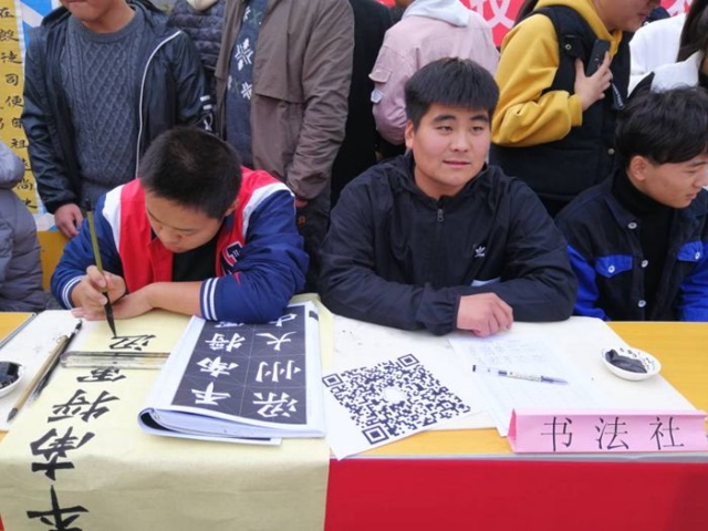 书法社成立于2017年11月13日,名曰“墨缘书社”,成立后在校园内取得优良的效果,得到全校师生的认同。此次书法社招新内容以书法基础效果为核心,介绍毛笔的结构、握笔的姿势、坐姿和如何顺锋运笔。书法社社长社员认真介绍教导,为想要参加书法社团的新生做出了良好的示范,激发了同学们浓厚的书法兴趣,此次招新也营造了浓郁的文化氛围。